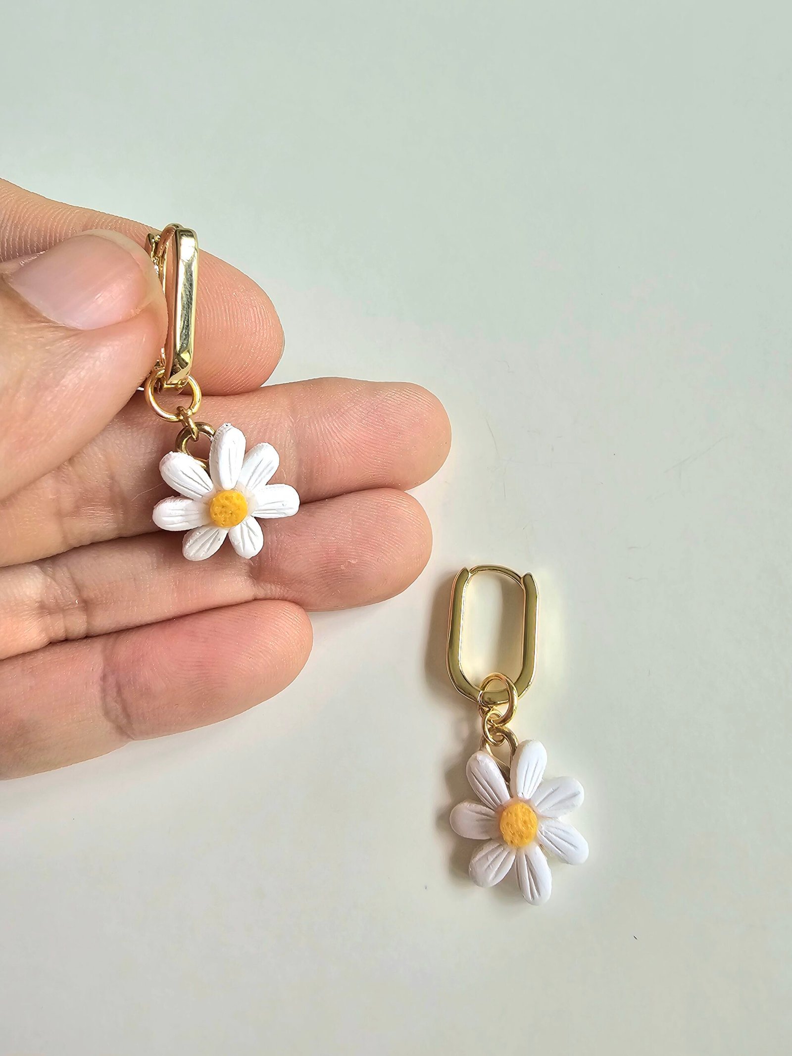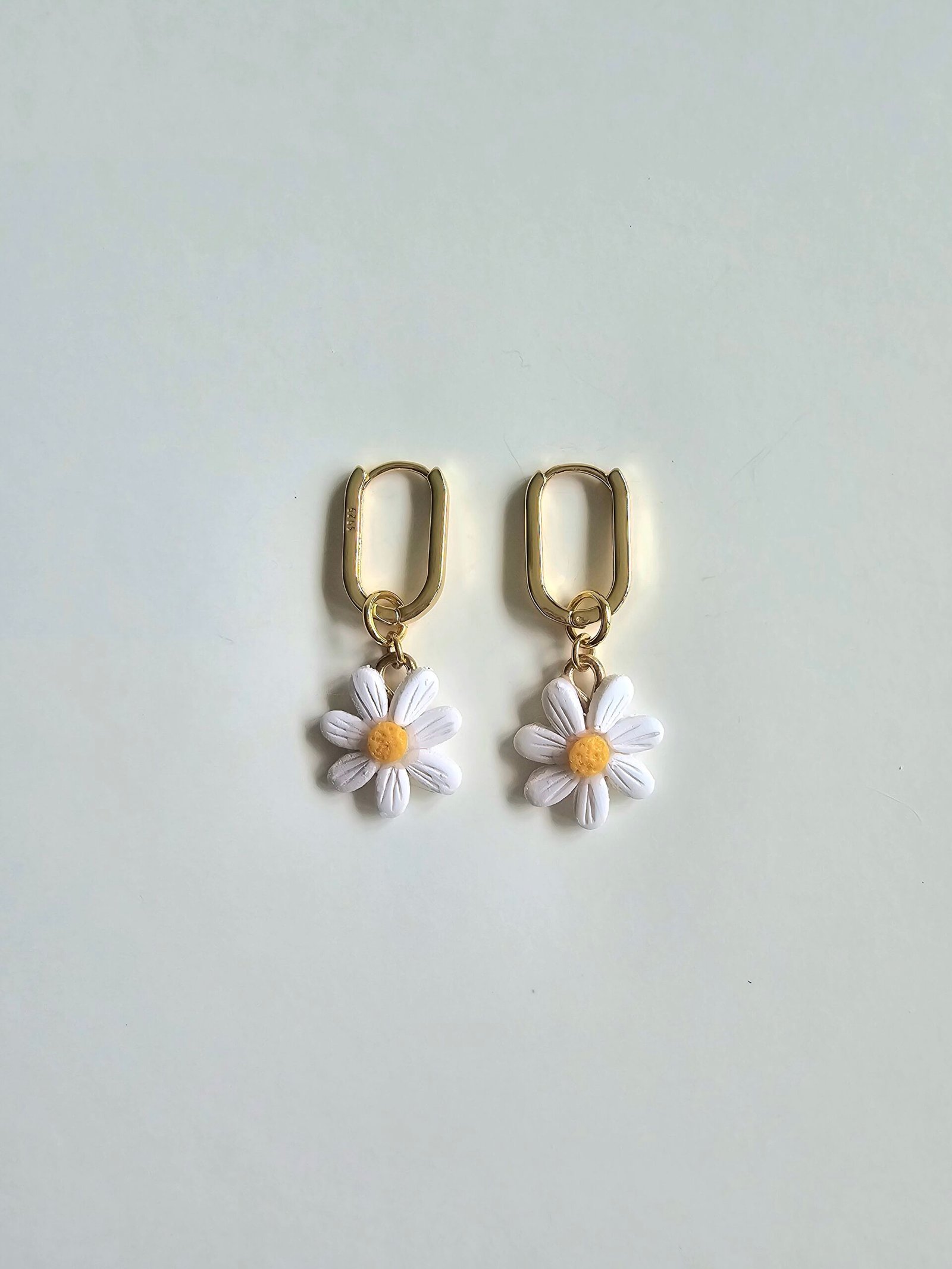 Handcrafted white daisy charms with a sunny yellow centre, paired with 925 gold-plated huggies for a clean, easy-to-wear finish. Lightweight, sweet, and effortless with any outfit.